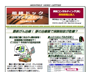 9月号では、厚生労働白書(2018年版)やさまざまな資料から、がんの罹患と早期発見・治療、最新がん先端治療事情、高額医療時代の健康保険などについてご紹介しています。