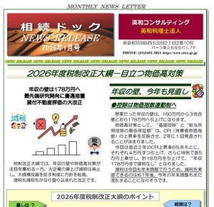 ★ ニュースリリース1月号をご自身の事務所(税理士法人)名で発行されたい場合やバックナンバーの閲覧は、SDG相続ドック・グループに加盟のうえ会員登録が済み次第、すぐに可能です (欄外をご参照ください)。